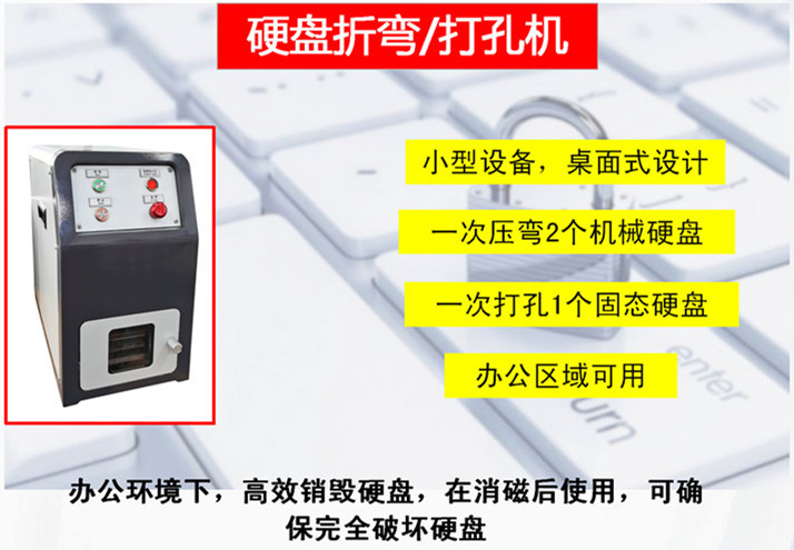 在消磁后使用硬盤折彎機,可以機械性破壞硬盤,損壞讀寫頭和軸承,使數(shù)據(jù)無法被恢復(fù)。